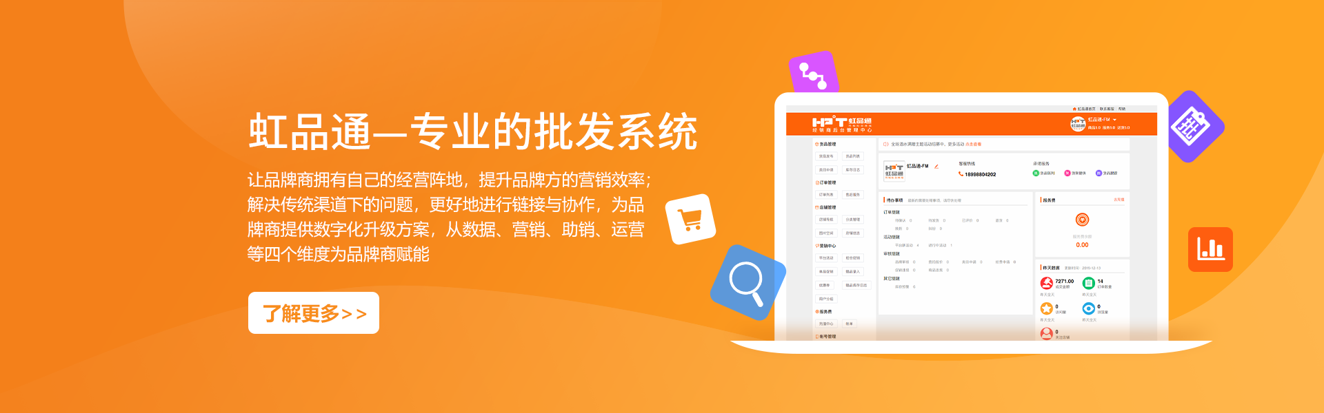 南寧虹品通軟件科技有限公司成立于2014年,是一家開發(fā)軟件技術服務公司。公司總部位于中國綠城南寧市,專注軟件行業(yè)系統(tǒng)支持和供應鏈大數(shù)據(jù)開發(fā),并將其應用于商業(yè)領域。掌握供應鏈系統(tǒng)研發(fā)、商品流通大數(shù)據(jù)、批發(fā)零售商城等核心技術,并持有多項技術專利和著作權。公司致力于幫助生產廠家、商品流通、銷售型企業(yè)向互聯(lián)網(wǎng)化轉型升級,利用互聯(lián)網(wǎng)獲取客戶、洞察市場、服務客戶